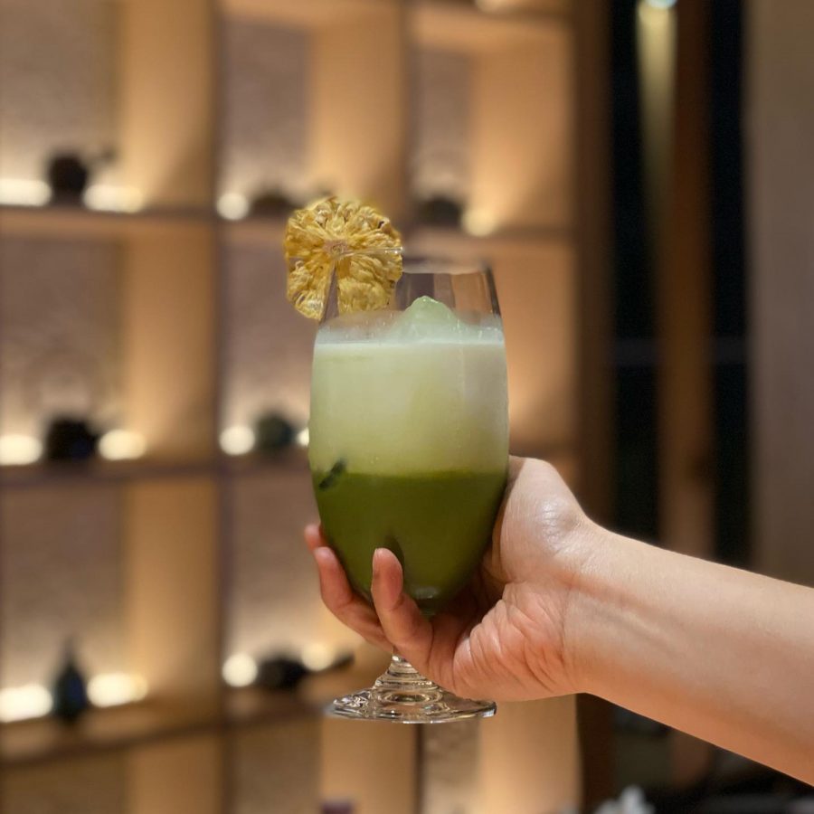 Matcha latte สีเเกมเหลือง ผสมน้ำสัปปะรด